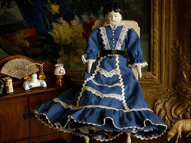 ■fr-a03649 Chine Tete Poupee ニュイブルー&ブランシュローブフィーユ・シーヌ・テット・プーペ