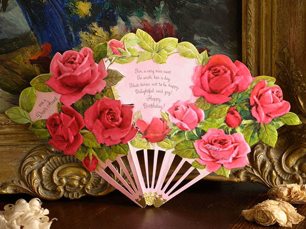 ■ot-a01029 Hallmark Card ピンク&レッドローズ・アーントバースデイフォールディングファン