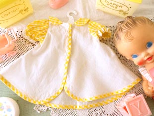 ろは薄いコットンで襟と袖と裾はイエローのギンガムチェックのファブリックで手作りされたパーティー