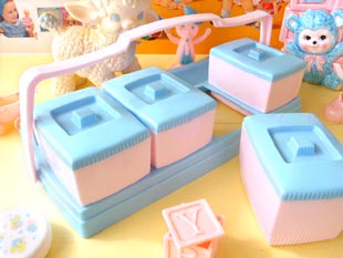 あります。当時のアメリカではベビーベットの脇には必ずこうしたナーサリージャーセットが置いてあっ