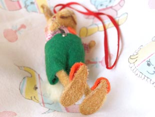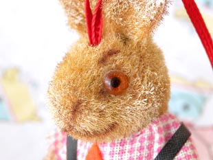 キー加工で植毛されたボーイバニードールで、ピンクのギンガムチェックのシャツにフェルトのオレンジ