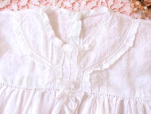 の襟ぐりや袖口や前身ごろには細やかでオシャレなレースが使われて胸元にはサテンのリボン飾りが付い