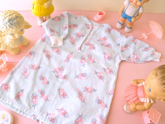 おそらく1950年代頃に手作りされたフランネル製のピンク&ブルーキトゥンベビードールドレスです。こ
