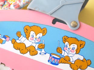 ワイトの本体には二匹のベビーベアがドラムとビューグルで楽しそうに遊んでいるイラストがデザインさ