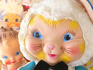 1950年代に製造した顔がラバー製で体がぬいぐるみのジュピターブルー&ピンクテイルコートイースターボ