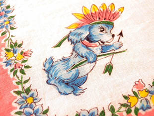 おそらく1950年代にアメリカで制作されたコットン製のピンク&ホワイトパピーチャイルドハンカチーフで