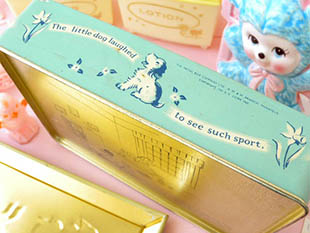 チャーフレームになった珍しいトフィー缶で、フタにはHey, Diddle, Diddle !(ヘイ、ディドゥル、ディドゥ
