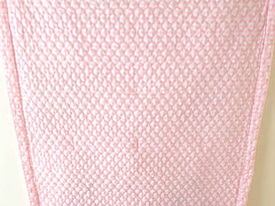 ダーとパイピングにはピンクとホワイトのギンガムチェックのファブリックが使われていますが、キルティ