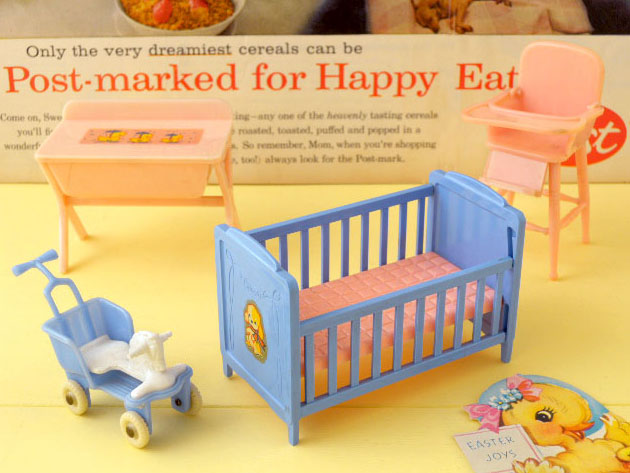 とラブリーで可愛くてとてもいい感じです。小さなドールハウス用のベビーファーニチャーセットですが、