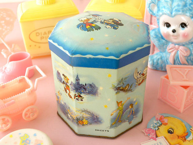 いたティン製のアリス&ディズニーオールスターズオクタゴナルブルートフィー缶です。こちらは超レアな
