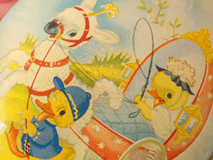 めに製造したチョコレートが入っていたティン製のイースターラムカート&ダックリング&チックトフィー缶