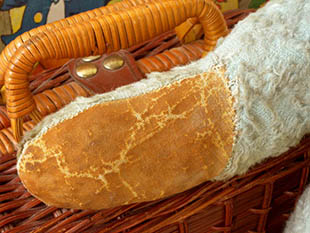 グロウラーが作動して「グァー」と鳴きます。ウールに抜けや多少の汚れがありますが割ときれいです。グラスアイにキズや欠けはなく大変きれいです。プラウンのオイルクロスパッドに傷みがありますがほつれや破れはなくきれいです。お鼻とお口の刺繍に切れはなくきれいです。その他、多少の傷みや汚れなどありますがほつれや破れはなく古いベアにしてはとても状態が良くきれいで、Good Conditionです。
