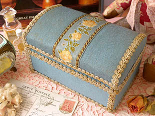 雅なモールの縁取りがされてフタの中央にはロゼのローズが刺繍されていてエレガントでオシャレでとても