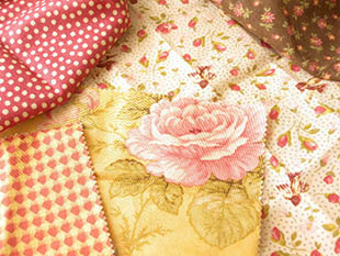 パッチワークティッシュ(パッチワーク生地)が27枚付属していて、色々な種類のお花や小鳥やポワ(水玉)や千