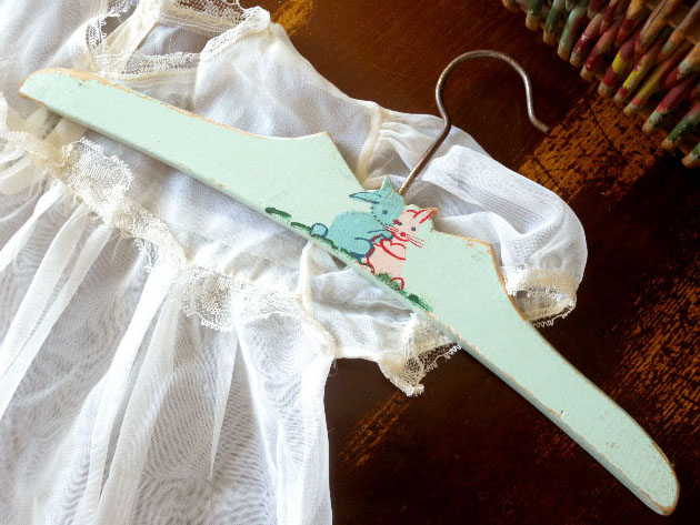 ファン(子供部屋)のような雰囲気で、ベベやプーペ(ドール)用のドレスやニットなどを掛けてオシャレに可愛