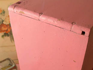たプーペ(ドール)用のアルムワール(ワードローブ)で、ロゼ(ピンク)に塗装された扉にはおそらく1900年代に