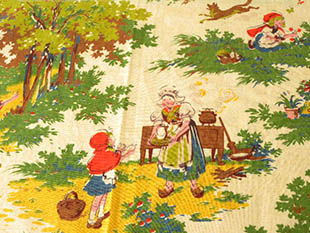 の生地で作られたル・プティシャペロンルージュナップです。こちらはとてもレアなグリム童話のLe Petit
