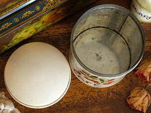 フランスでおそらく1930年代に製造されたトール(ティン)製のルージュスリーズ・イヴォワールトールカフェボワットです。こちらは超レアなフタの付いたイヴォワール(アイボリー)の筒型のキュイズィーヌ(キッチン)用のCafe(カフェ/コーヒー)を入れるために作られたボワット(ボックス)で、本体の正面にはポショワール(ステンシル)の技法で描かれたようなノワール(ブラック)のCafeのロゴがデザインされています。また、ロゴの上には枝に生ったルージュ(レッド)のCerise(スリーズ/サクランボ)のイラストがデザインされていてオシャレで可愛くてとてもいい感じです。こちらと同じシリーズにはSucre(シュクレ/シュガー)、Farine(ファリーヌ/小麦粉)、Pates(パッツ/パスタ)、Chicoree(チコリー)、Poivre(ポワブル/ペッパー)やAllumettes Boite(アリュメットボワット/マッチボックス)、Sel Boite(セルボワット/ソルトボックス)などもあるようなので全部揃えると古い時代のフランスの家庭のキュイズィーヌの雰囲気が漂うようで素敵で楽しいですね。さすがにフランス製品はデザインクオリティーが高くて塗装の剥がれやサビがあってもエレガントでオシャレな雰囲気はすたれないですね。キュイズィーヌの小物入れに便利ですが工夫次第で色々とオシャレに使えそうな超レアなルージュスリーズ・イヴォワールトールカフェボワットです。