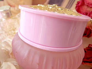 ルで、ピンクのフタの上部はゴージャスなゴールドのアールヌーヴォーのアラベスクパターンの凝った作り