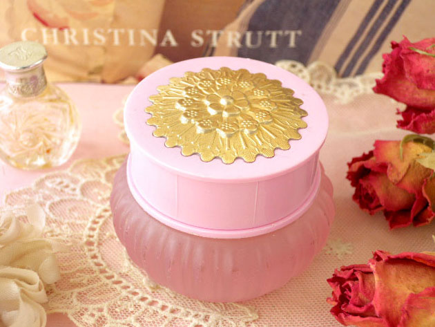たクリームサシェが0.66オンス(約18.7g)入っていたガラスとプラスチック製のピンク&ゴールドイルーシヴ