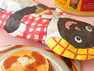 おそらく1950年代にパンケーキ(薄いホットケーキ)の粉の販売促進用に制作したビニール製のアーントジェマ