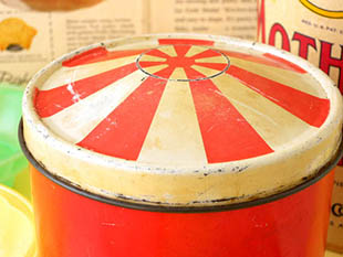 造したティン製のレッド&アイボリーサーカステントシュガーキャニスター缶です。こちらはとてもレアな