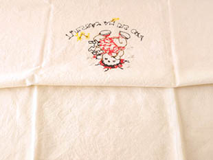 タオルです。こちらはレアな少し大きなサイズのアイボリーのコットンのディッシュタオルで、本体には