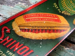 おそらく1930年代のシノーラシューポリッシュ社が販売促進用に制作したメタル製の靴べらです。この