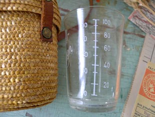 温泉水を飲むことで、グラスには白い目盛りがあり薬と同じように決められた分量だけ飲むようです。