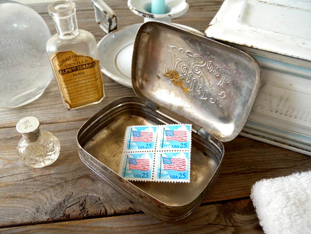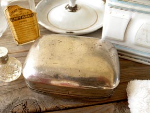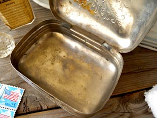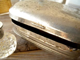 おそらく1920年年代に製造されたメタル製のトイレットソープ(化粧石鹸)ケースです。こちらは旅行用