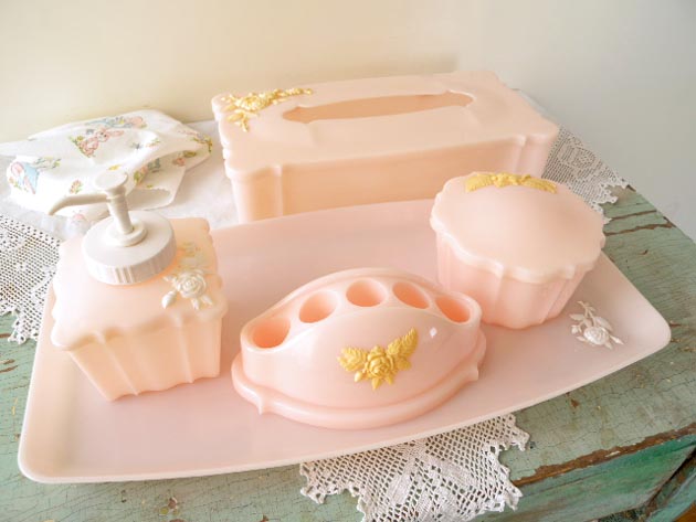 パステルピンクのバニティーセットです。アメリカ製。