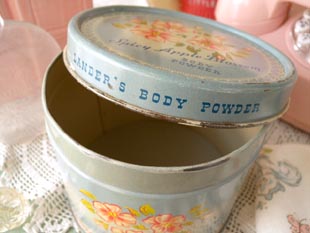 たティン製のパウダー缶です。ランダー社はアメリカではパーソナルケア製品の販売で有名で当時は世