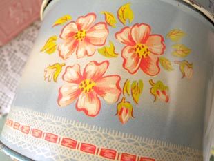 界の40カ国以上に輸出していたようです。こちらはライトブルーにピンクのアップルの花と白いレース