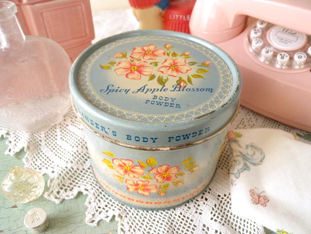 社のアップルブロッサムボディーパウダー缶です。アメリカ製。