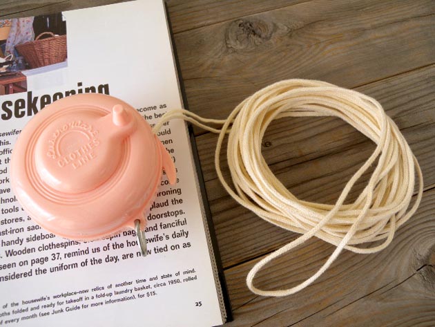 ベル用のサーモンピンクのクロスラインリ−ルで、主に女性のランジェリーなどをホテルの室内で干す