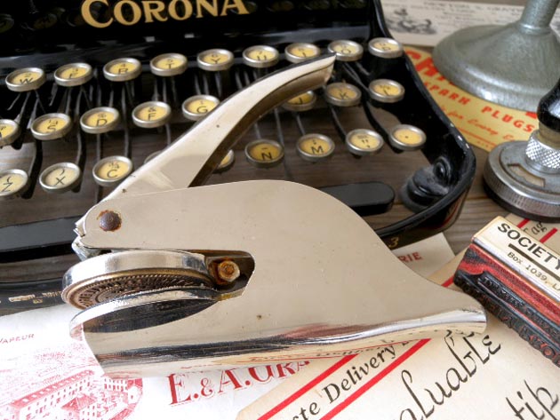 ません。スローな時代のシールのエンボスが美しいポケットシールプレスです。アメリカ製。