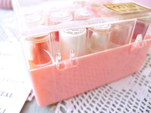 ミーピンク、カフェローズなどの素敵なネーミングラベルがケースに貼られています。当時のハリ