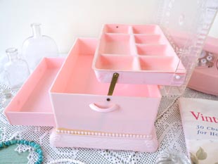 付けてあります。とてもきれいなマーブルピンクのボックスでジュエリー以外にもソーイングなどの小