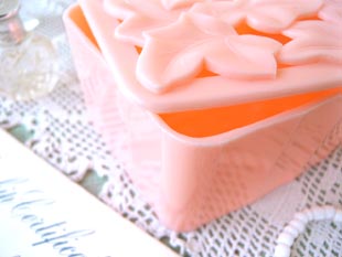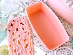 おそらく1950年代にロンドンにあるブルジョワ社が製造したプラスチック製のピンクのフタの付いた