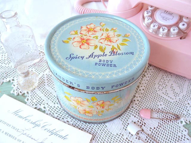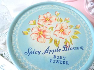 社のアップルブロッサムボディーパウダー缶です。アメリカ製。