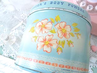 たティン製のパウダー缶です。ランダー社はアメリカではパーソナルケア製品の販売で有名で当時は世