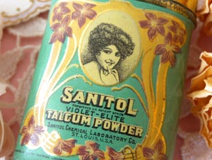 Sanitol Violet-Elite Talcum Poeder Sanitol Chemical Laboratory Co. St. Louis, U.S.A.の表示がありま