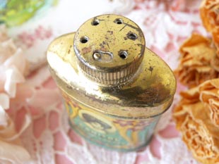 缶の中に当時のパウダーが少し残っていてフタは回転させるとスムーズに上部の穴が開閉します。多少の
