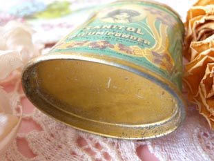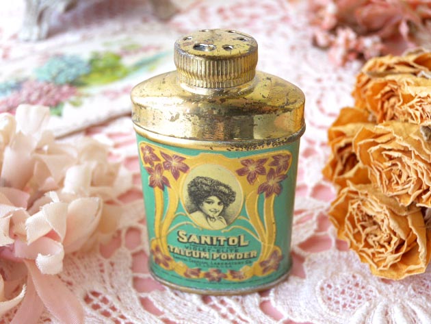 代に製造したViolet-Elite(ヴァイオレットエリート)という商品名のタルカムパウダーが入っていた真鍮製
