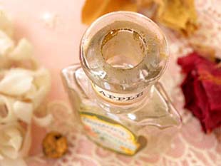 こちらはレアなコルクのフタの付いたパフュームボトルで、ボトルネックのラベルにはCrab Appleの表示