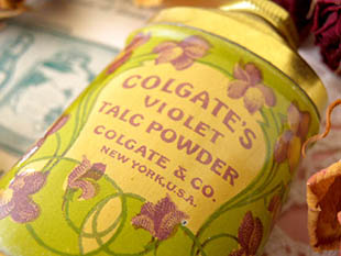 シャレでとてもいい感じです。タルカムパウダー缶の背面にはGuaranteed by Colgate & Co. under the