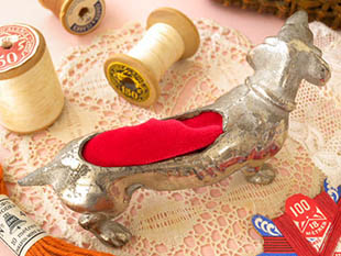 や椅子や靴などのフォルムでナーデルキッセンが作られていたようですが、ダックスフントのナーデル