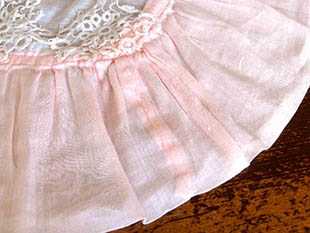 レースと生地に色焼けや色褪せは少なく発色が良くとてもきれいです。写真のようにレースにほつれた部分が多少あります。生地に擦れからの破れが多少あります。その他、多少の傷みや汚れなどありますが古いものの状態が良くきれいで、Good Conditionです。