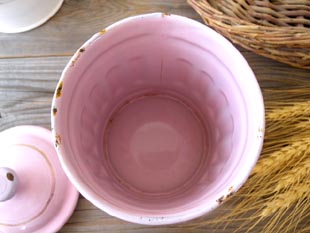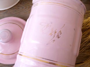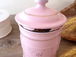 なフォルムになってしまうピンクカラーがとても可愛いティーホウロウキャニスターです。