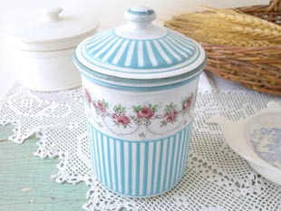 パー)を入れるためのキャニスターでおそらく6個セットの中の一つで、爽やかな白地にライトブルー